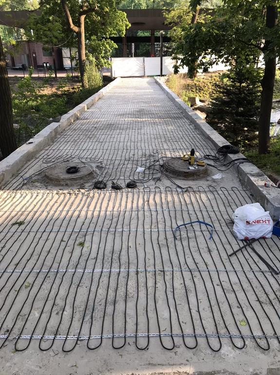 На данном объекте было выполнение монтажные работы по установке системы обогрева пандуса, ступеней, въезд в паркинг, мостика.